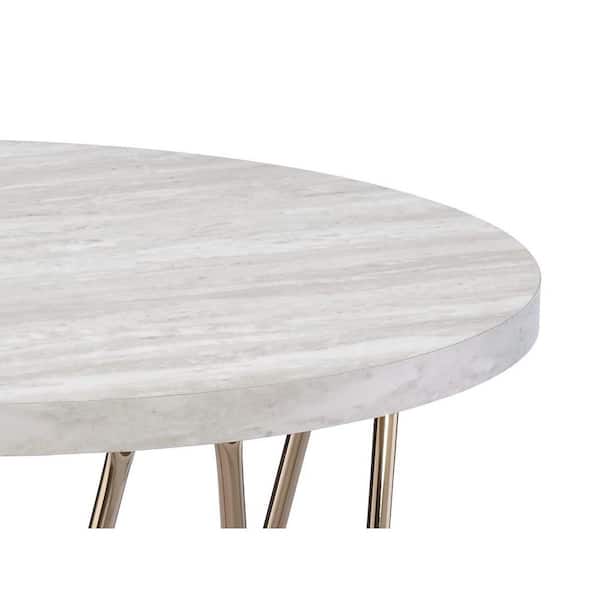 Rowyn 24 in. Gray Round Faux Marble Top End Table with Gold Frame