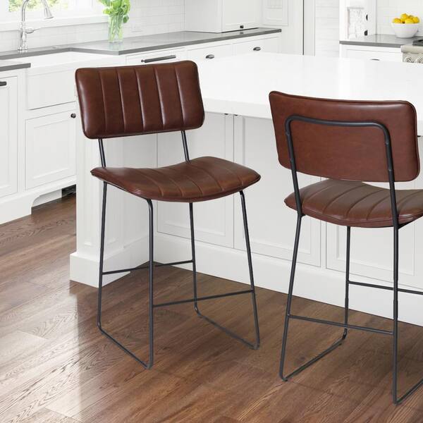 Tribeca 24 in. Steel Frame with Cordovan Brown Faux Leather Seat and Standard Curved and Tufted Back Counter Stool