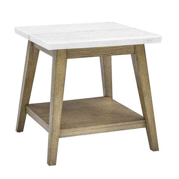 Vida 24 in. White Marble Top Brown Wood Square End Table