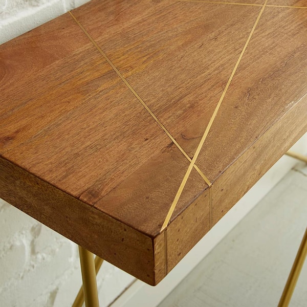 Walter End Table Mango Wood Top with Brass Inlay and Base