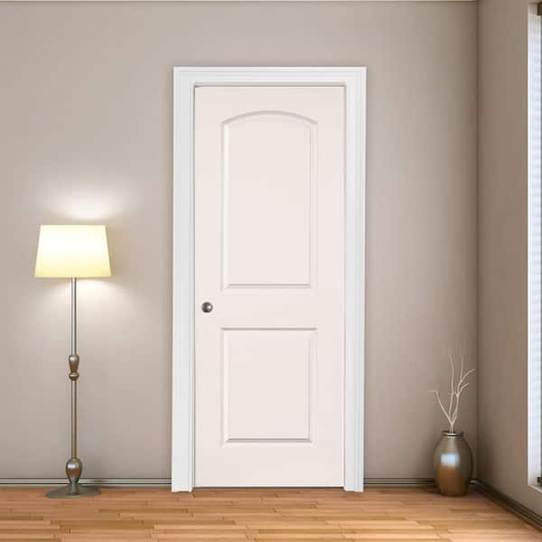 18 in. x 80 in. 2-Panel Round Top Smooth Hollow Core White Primed Right Hand Composite SJ Single Prehung Interior Door
