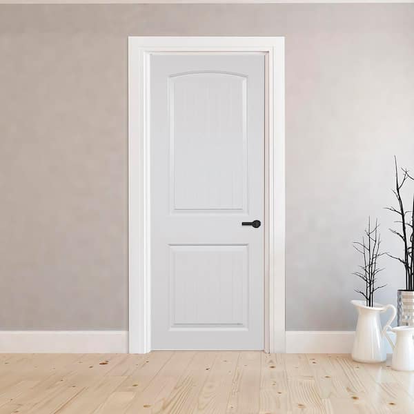 24 in. x 80 in. 2-Panel Round Top Plank Smooth Hollow Core White Primed Composite Single Prehung Interior Door