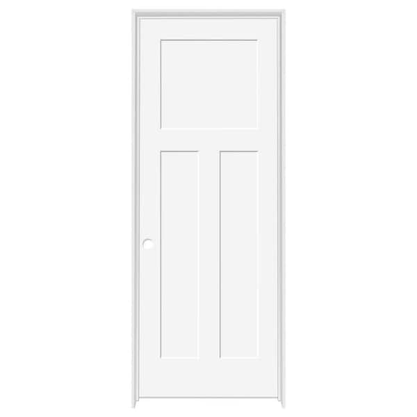 24 in. x 80 in. 3-Panel Craftsman Right-Hand Solid Core White Primed Wood Single Prehung Interior Door