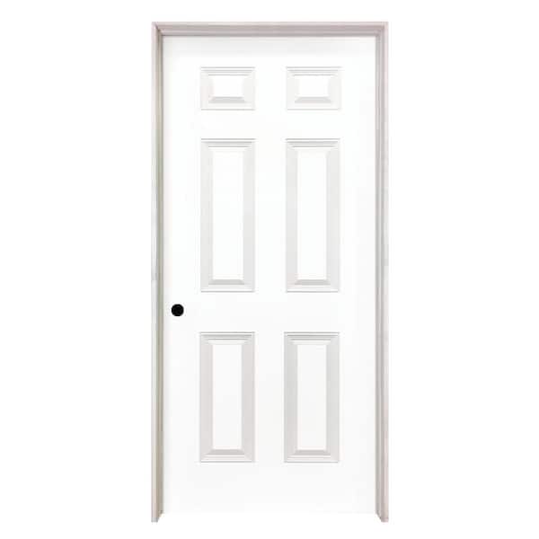 24 in. x 80 in. 6 Panel Right-Handed Solid Core White Primed Wood Single Prehung Interior Door With Bronze Hinges