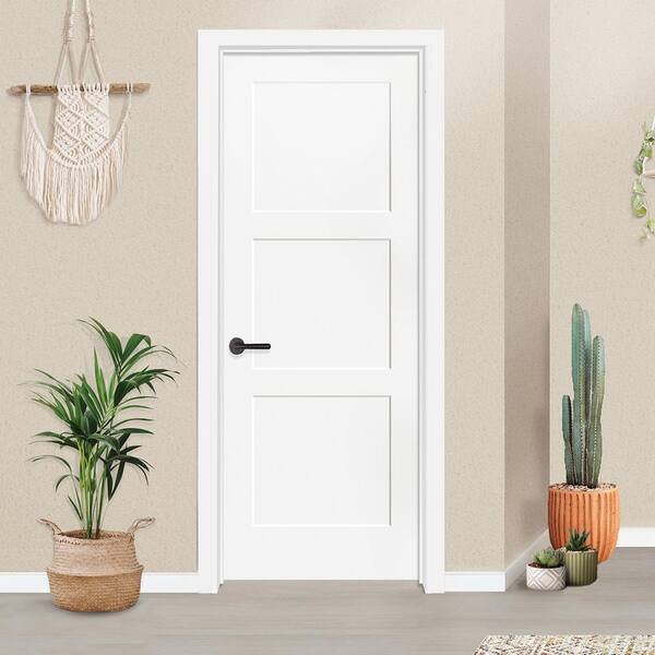 30 in. x 80 in. 3-Panel Craftsman Right-Hand Solid Core White Primed Wood Single Prehung Interior Door