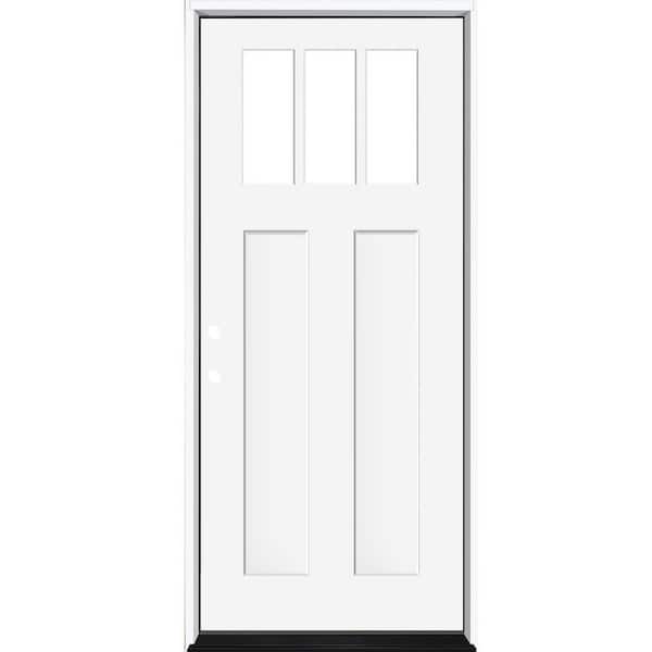 32 in. x 80 in. Legacy 3 Lite Toplite Clear Glass Right Hand Inswing White Primed Fiberglass Prehung Front Door