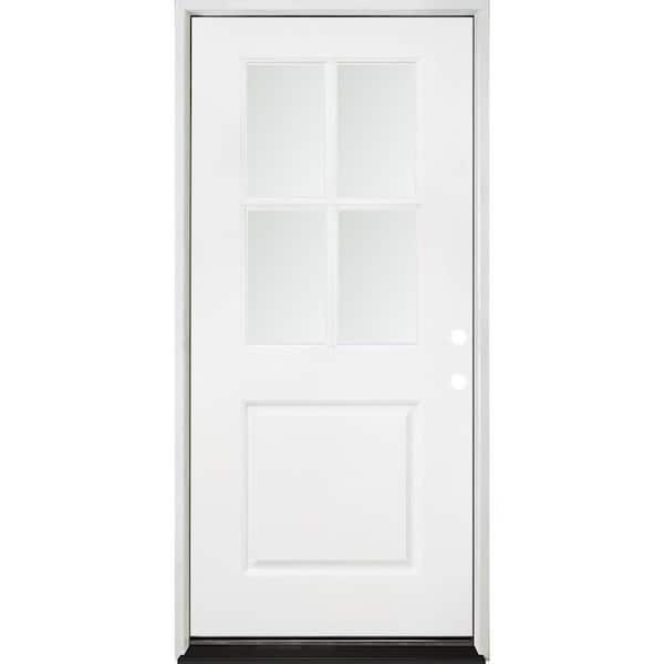 32 in. x 80 in. Legacy 4 Lite Half Lite Clear Glass Left Hand Inswing White Primed Fiberglass Prehung Front Door