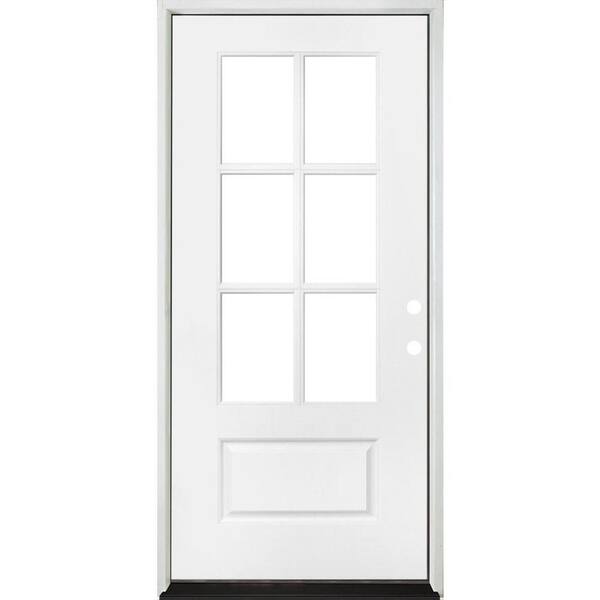 32 in. x 80 in. Legacy 6 Lite 3/4 Lite Clear Glass Right Hand Inswing White Primed Fiberglass Prehung Front Door