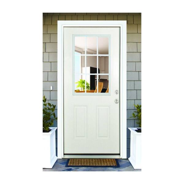 32 in. x 80 in. Reliant Series Left-Hand 9-Lite External Grille White Primed Fiberglass Prehung Front Door
