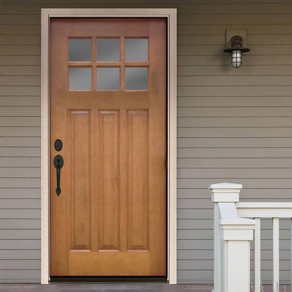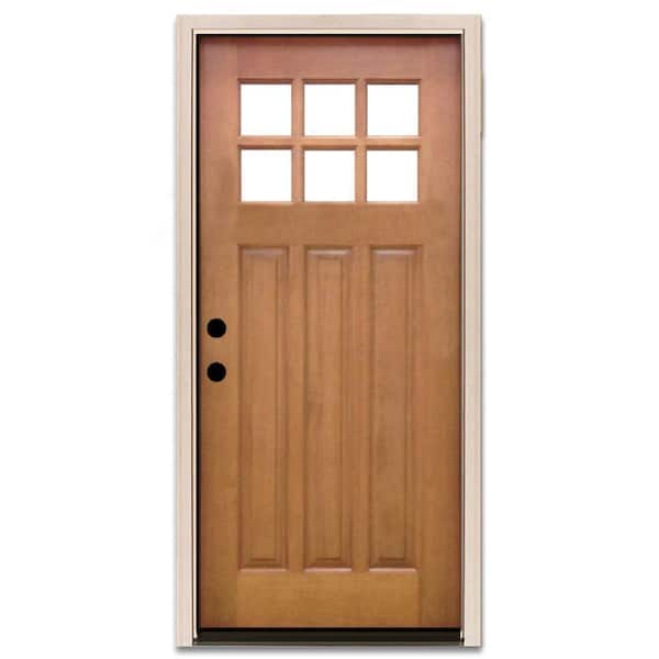 36 in. x 80 in. Craftsman 6 Lite Stained Mahogany Wood Prehung Front Door