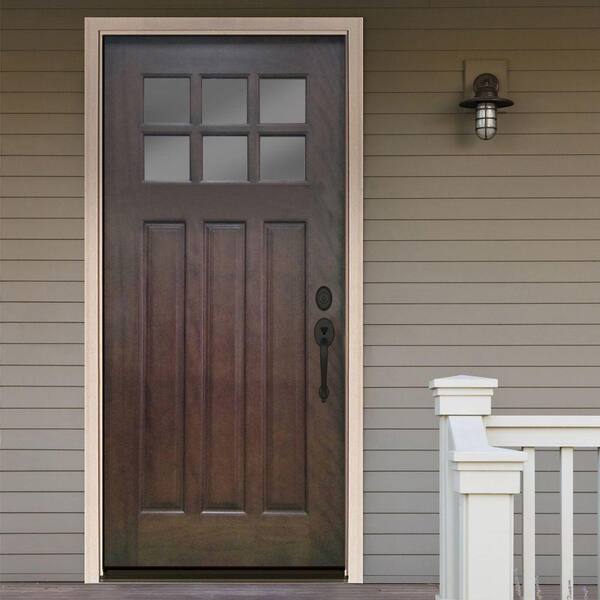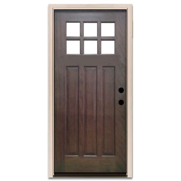 36 in. x 80 in. Craftsman 6 Lite Stained Mahogany Wood Prehung Front Door