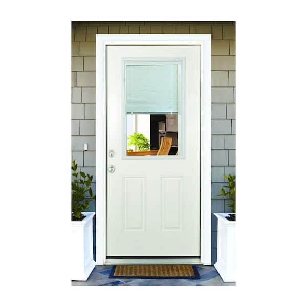 36 in. x 80 in. Element Series Right-Hand 1/2-Lite Mini Blind White Primed Steel Prehung Front Door