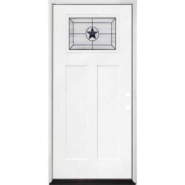 36 in. x 80 in. Legacy Series Alamo Toplite Decorative Glass White Primed LH Inswing Fiberglass Prehung Front Door