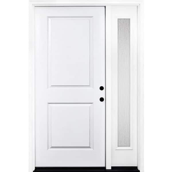 53 in. x 80 in. Element Series 2-Panel LHIS White Primed Steel Prehung Front Door with Single 14 in. Rain Glass Sidelite