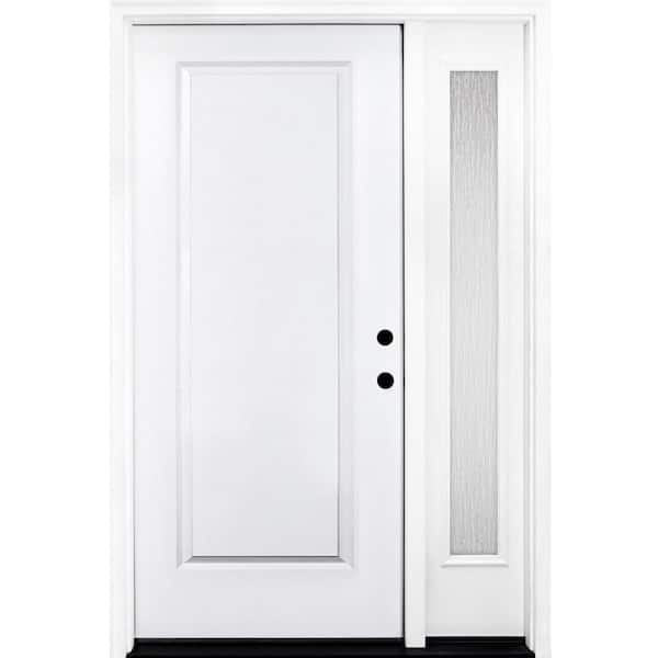 55 in. x 80 in. Element Series 1-Panel LHIS Primed White Steel Prehung Front Door with Single 16 in. Rain Glass Sidelite