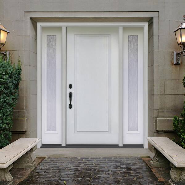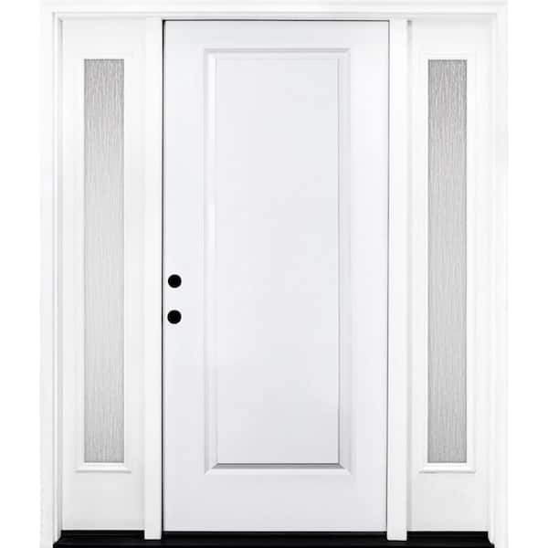 60 in. x 80 in. Element Series 1-Panel RHIS Primed White Steel Prehung Front Door w/ Double 10 in. Rain Glass Sidelites