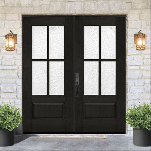 72 in. x 80 in. Regency 3/4-Lite 4SDL Brook Deco Glass RHOS Onyx Fiberglass Double Prehung Front Door 4-9/16 in. Jamb