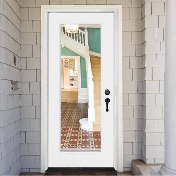 Legacy 30 in. x 80 in. Full-Lite Clear Glass LHIS Primed Unfinished Fiberglass Prehung Front Door