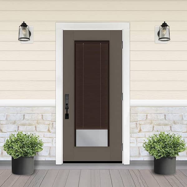 Legacy 30 in. x 80 in. Full Lite Clear Glass Mocha Miniblind LHOS Kindling Fiberglass Prehung Door w/4-9/16 in. Jamb