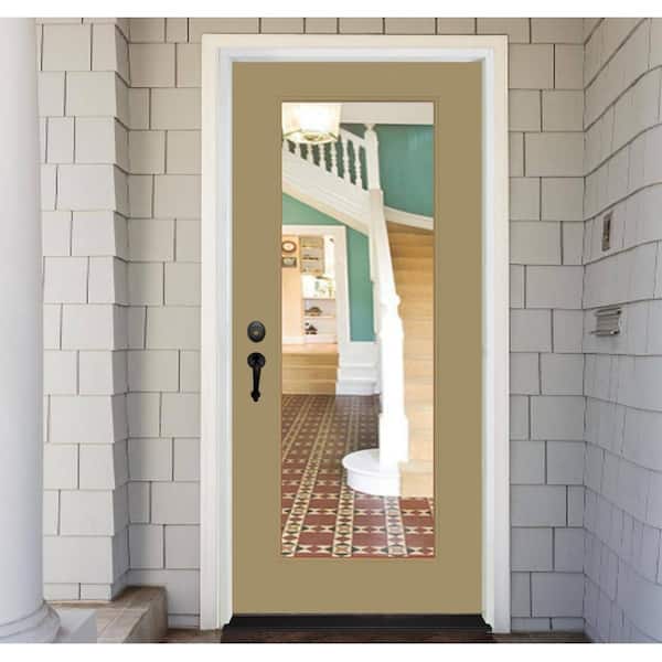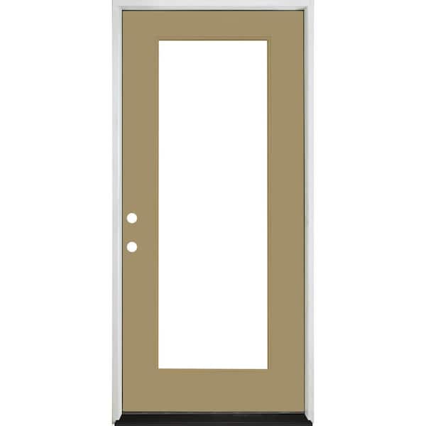 Legacy 30 in. x 80 in. Full-Lite Clear Glass RHIS Sandstone Finish Fiberglass Prehung Front Door