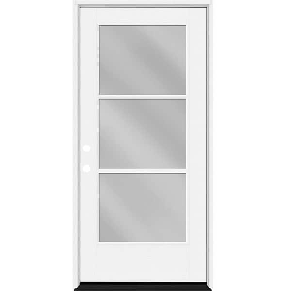 Legacy 30 in. x 80 in. Icon 3 Lite Modern Clear Glass RHIS Primed Fiberglass Prehung Front Door