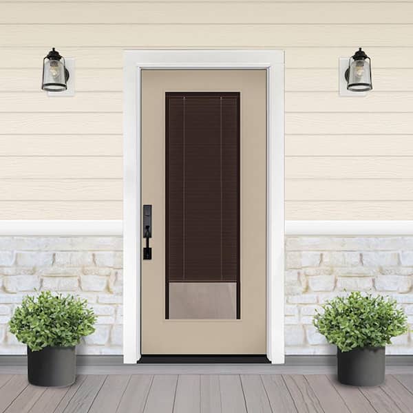 Legacy 30 in. x 80 in. Universal Handing Full Lite Clear Glass Mocha Miniblind Sandstone Fiberglass Front Door Slab