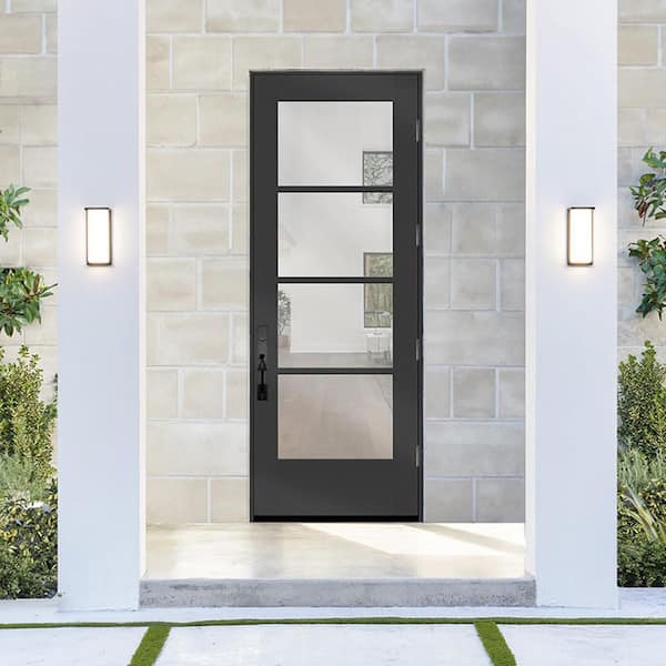 Legacy 30 in. x 96 in. Icon 4-Lite Modern Clear Glass LHOS Black Fiberglass Prehung Front Door with 4-9/16 Jamb