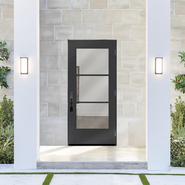 Legacy 32 in. W. x 80 in. Universal Handing Icon 3 Lite Modern Clear Glass Black Fiberglass Front Door Slab
