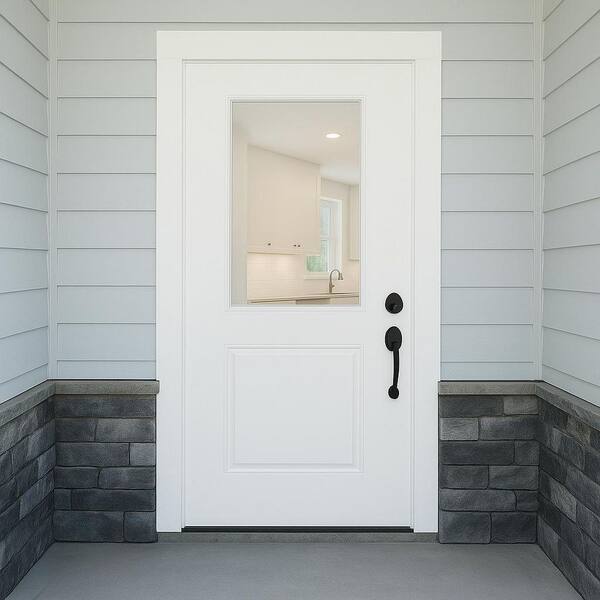 Legacy 32 in. x 80 in. 1/2-Lite Clear Glass LHIS Unfinished Fiberglass Prehung Door with 4-9/16 in. Jamb
