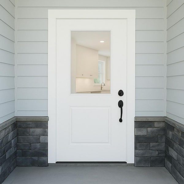 Legacy 32 in. x 80 in. 1/2-Lite Clear Glass LHIS Unfinished Fiberglass Prehung Door with 6-9/16 in. Jamb