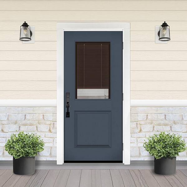 Legacy 32 in. x 80 in. 1/2 Lite Clear Glass Mocha Miniblind LHOS Dark Denim Fiberglass Prehung Door w/6-9/16 in. Jamb