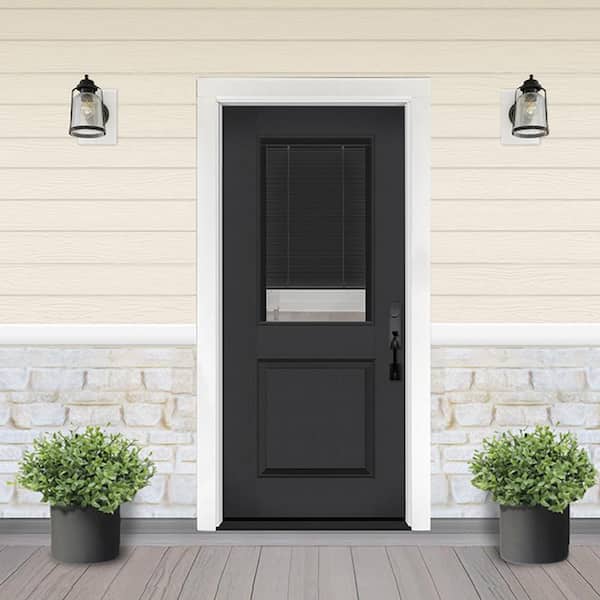 Legacy 32 in. x 80 in. 1/2 Lite Clear Glass Noir Miniblind LHIS Black Finish Fiberglass Prehung Door w/4-9/16 in. Jamb