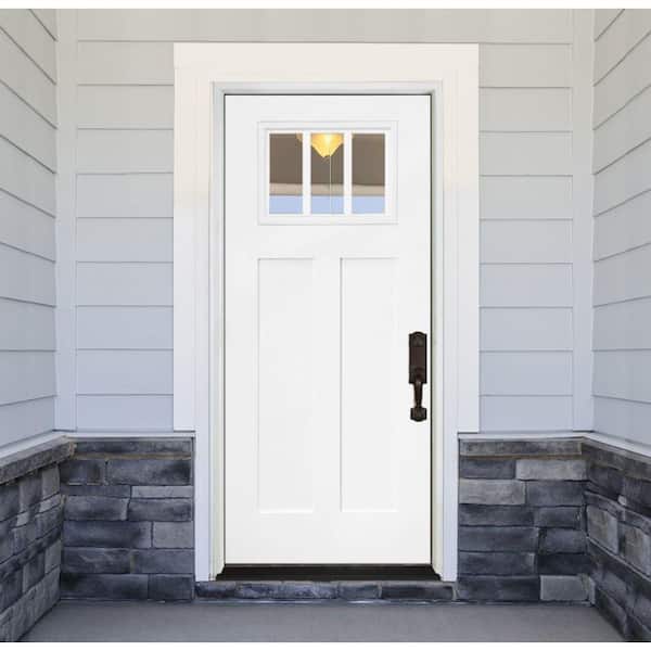 Legacy 32 in. x 80 in. Left Hand/Inswing 3-Lite Clear Glass Primed Fiberglass Prehung Front Door with Brickmold