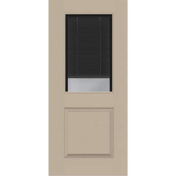 Legacy 32 in. x 80 in. Universal Handing 1/2-Lite Clear Glass Noir Miniblind Sandstone Finish Fiberglass Front Door Slab