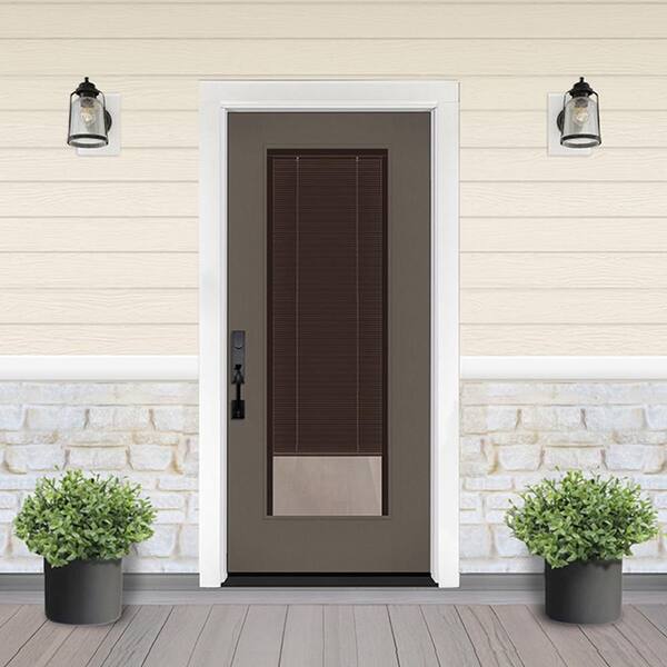 Legacy 32 in. x 80 in. Universal Handing FullLite Clear Glass Mocha Miniblind Kindling Finish Fiberglass Front Door Slab