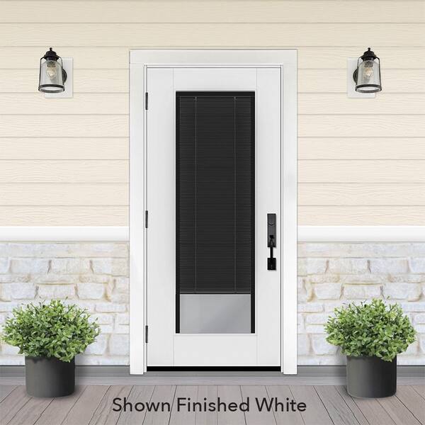 Legacy 34 in. x 77 in. Full Lite Clear Glass Noir Miniblind RHOS White Finish Fiberglass Prehung Door w/4-9/16 in. Jamb