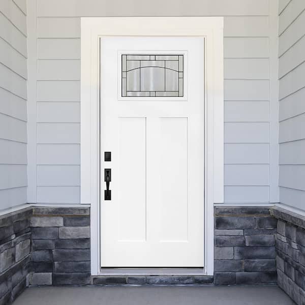 Legacy 34in. x 80in. 1/4-Toplite Knox Decorative Glass LHOS Primed Unfinished Fiberglass Prehung Front Door w/6 in. Jamb