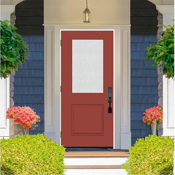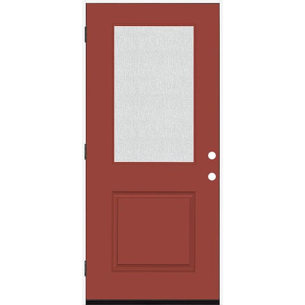 Legacy 36 in. W. x 80 in. 1/2 Lite Rain Glass RHOS Primed Morocco Red Finish Fiberglass Prehung Front Door