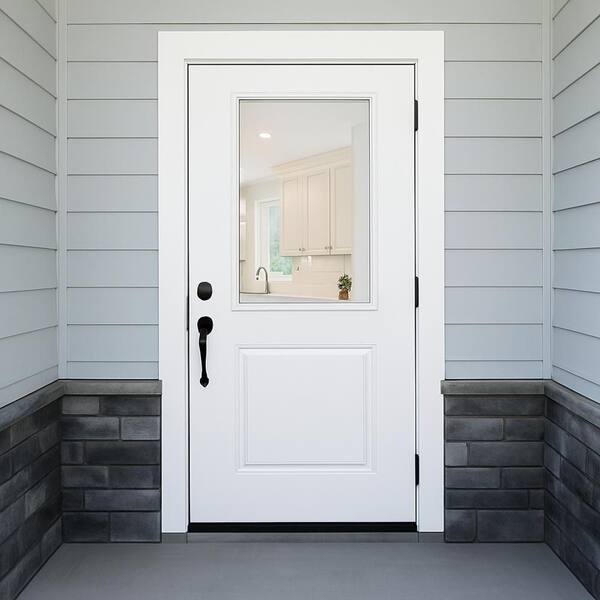 Legacy 36 in. x 80 in. 1/2 Lite Clear Glass LHOS Unfinished Fiberglass Prehung Door with 6-9/16 in. Jamb