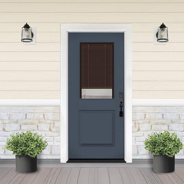 Legacy 36 in. x 80 in. 1/2 Lite Clear Glass Mocha Miniblind LHIS Dark Denim Fiberglass Prehung Door w/6-9/16 in. Jamb