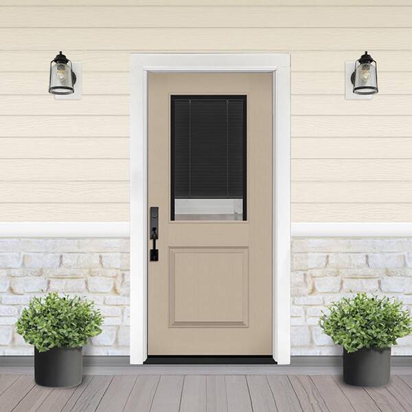 Legacy 36 in. x 80 in. 1/2 Lite Clear Glass Noir Miniblind RHIS Sandstone Fiberglass Prehung Door w/4-9/16 in. Jamb