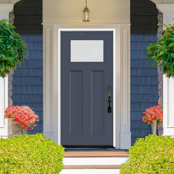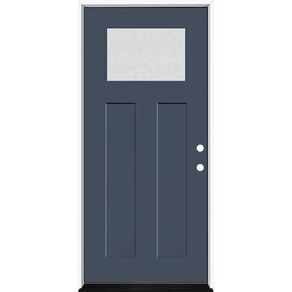 Legacy 36 in. x 80 in. 1/4 Toplite Rain Glass LHIS Primed Dark Denim Finish Fiberglass Prehung Front Door