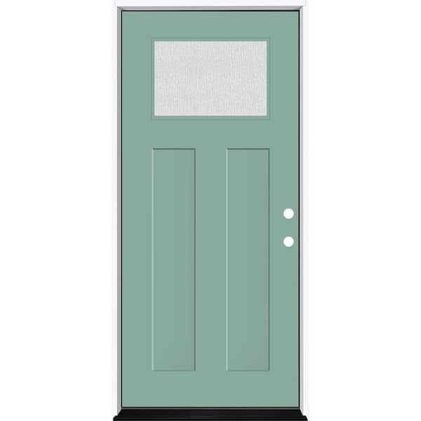 Legacy 36 in. x 80 in. 1/4 Toplite Rain Glass LHIS Primed Quarry Finish Fiberglass Prehung Front Door