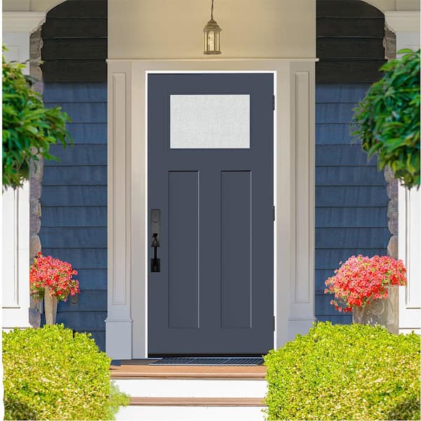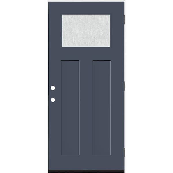 Legacy 36 in. x 80 in. 1/4 Toplite Rain Glass LHOS Primed Dark Denim Finish Fiberglass Prehung Front Door