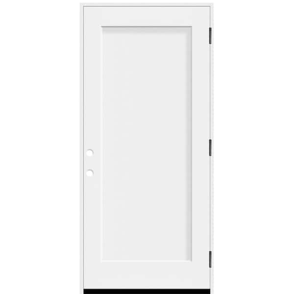 Legacy 36 in. x 80 in. 1 Panel Shaker LHOS Unfinished White Fiberglass Prehung Front Door w/6-9/16 Jamb