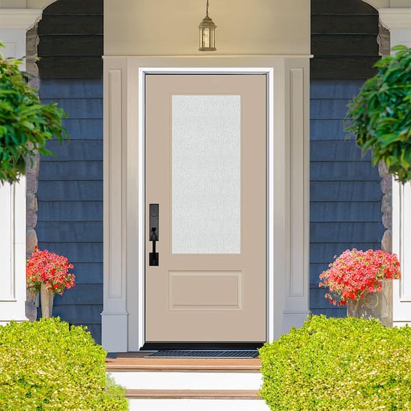 Legacy 36 in. x 80 in. 3/4 Lite Rain Glass RHIS Sandstone Finish Fiberglass Prehung Front Door
