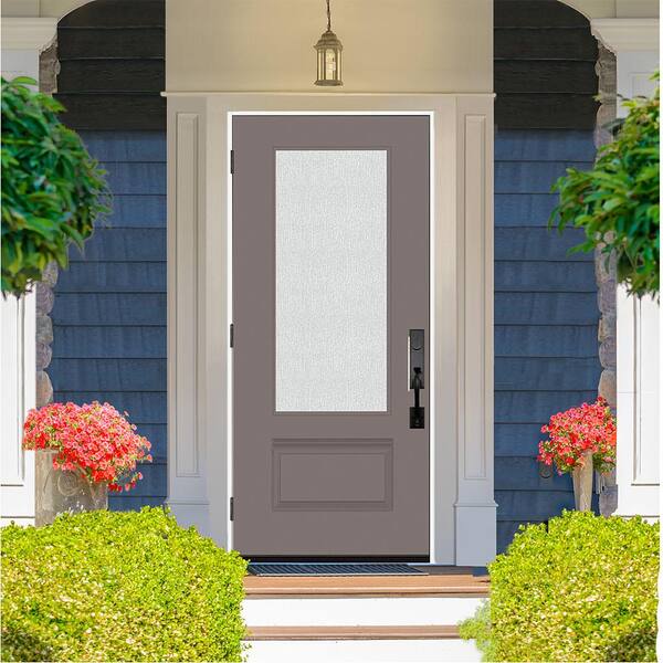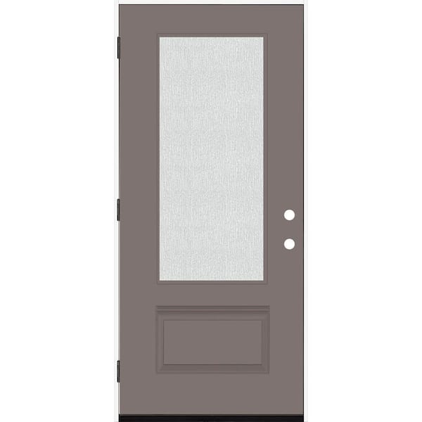 Legacy 36 in. x 80 in. 3/4 Lite Rain Glass RHOS Kindling Finish Fiberglass Prehung Front Door