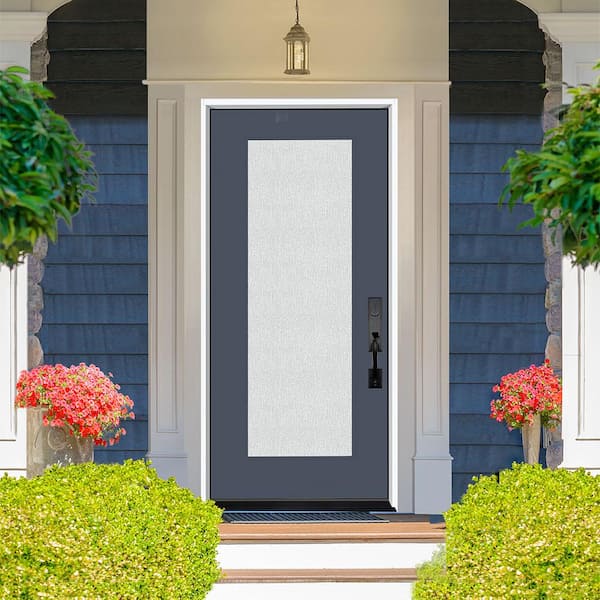 Legacy 36 in. x 80 in. Full Lite Rain Glass LHIS Primed Dark Denim Finish Fiberglass Prehung Front Door