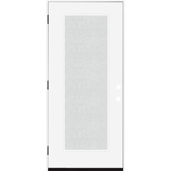 Legacy 36 in. x 80 in. Full Lite Rain Glass RHOS Primed White Finish Fiberglass Prehung Front Door