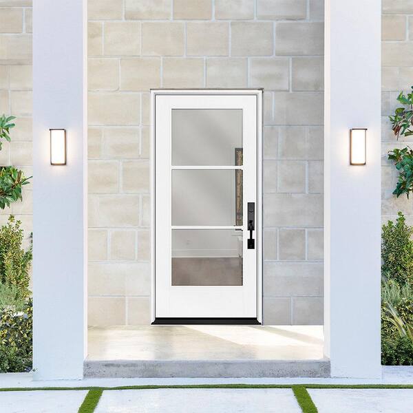 Legacy 36 in. x 80 in. Icon 3 Lite Modern Clear Glass LHIS Primed Fiberglass Prehung Front Door